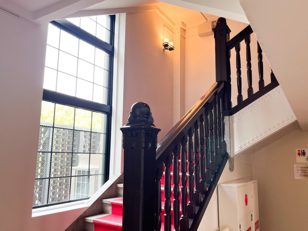 一階に戻りホールの入り口のドアを開けようとしましたが、鍵がかかってます。入れないのか、と思い外に出てうろうろしてると、建物の背中の部分に小さな自動ドアがありました。中に入ると、ちょうど管理室から職員の方が出てきて、見学の方ですね、どうぞ、と鍵を開けてくれました。